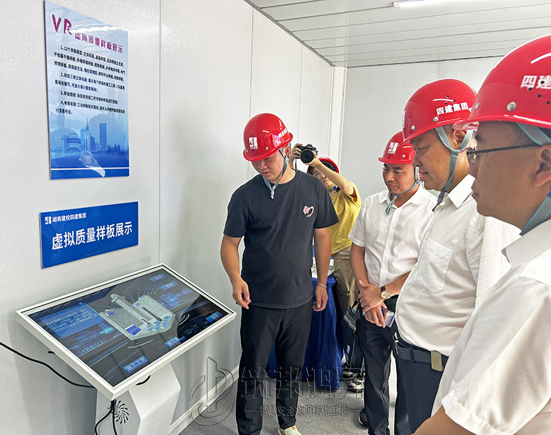 此次觀摩會聚集了眾多建筑行業(yè)的精英,他們駐足或流連于安全質(zhì)量標準化宣傳長廊及觀摩區(qū)、智能安全體驗館、VR體驗館、質(zhì)量標準化實體樣板、新工藝應用及材料展示區(qū)......附著式升降腳手架施工技術(shù)、舊模板改造循環(huán)利用等細節(jié)點,呈現(xiàn)了安全環(huán)保與質(zhì)感美觀兼具的完美融合;自主研發(fā)并應用的灌注樁泥漿循環(huán)系統(tǒng)綠色施工技術(shù),在保證質(zhì)量的同時傳遞了良好的環(huán)保綠色理念。通過實地參觀、親身體驗及交流經(jīng)驗,大家深入了解了本項目在安全質(zhì)量管理等方面的先進經(jīng)驗和做法。