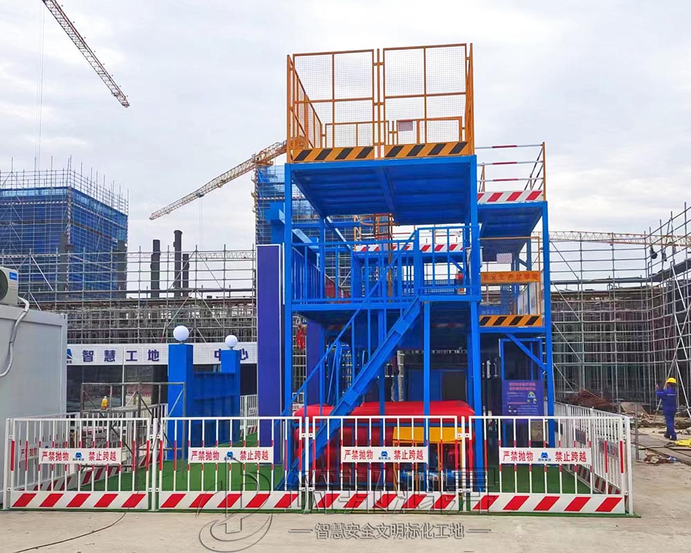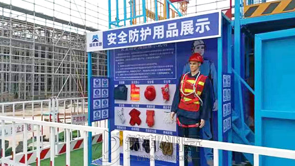 該綜合體搭建三層,整體大氣美觀,各類體驗(yàn)設(shè)備組合可定制,第一層設(shè)置了安全防護(hù)用品體驗(yàn),安全急救體驗(yàn),安全著裝展示,滅火器演示體驗(yàn),綜合用電體驗(yàn),安全帽撞擊體驗(yàn),機(jī)械傷害體驗(yàn),安全帶體驗(yàn),洞口墜落體驗(yàn),第二層設(shè)置了平衡木體驗(yàn),垂直爬梯體驗(yàn),各類臨邊護(hù)欄展示,施工電梯防護(hù)門展示,卸料平臺(tái)展示。第三層通過爬梯體驗(yàn)上去,設(shè)置了工地護(hù)欄和塔吊護(hù)欄展示。